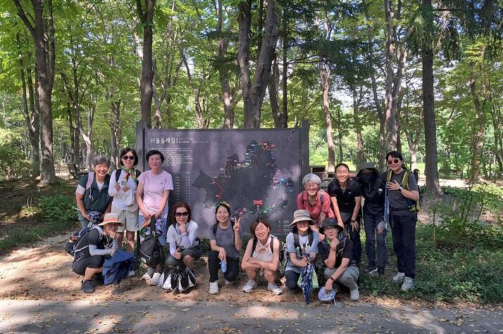 7월 방학을 끝내고 걷친들이 다시 모였다. 8월 24일 오전 9시 수서역 6번 출구 앞~ 일주일 전부터 날씨 체크를 했는데…. 설마설마 했는데 최고 기온 35도를 보고는 작년의 지리산둘레길을 걸었던 8월의 무모함이 떠올랐다. 그러나 걷기로 했으니 걷자고 했다^^ 충분히 물을 준비하고 8월의 숲에서 도시락 먹을 준비도 알렸다. 총 10.9키로 , 서울 둘레길 구간에서 제일 긴 구간 9코스…