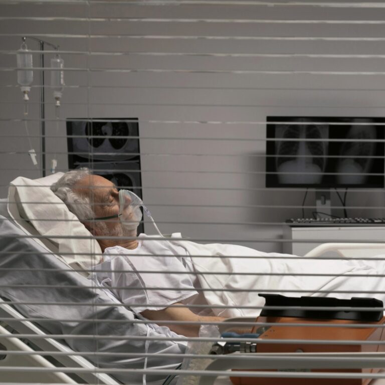 입에는 산소 공급을 위한 튜브, 코에는 영양을 공급하기 위한 관, 요도에는 소변을 배출하기 위한 폴리카테터, 손등에는 정맥주사 바늘, 가슴에는 심전도 모니터가 연결된 전극을 달고 병원…
