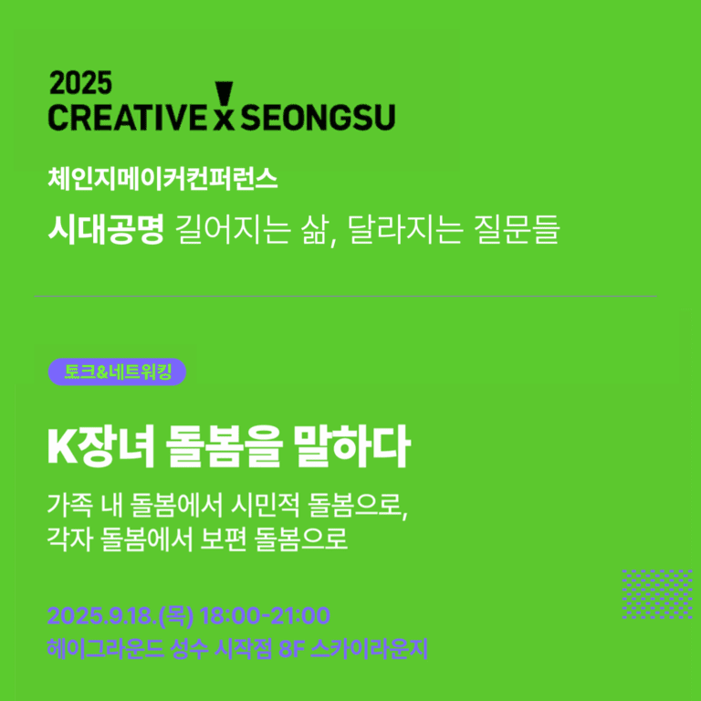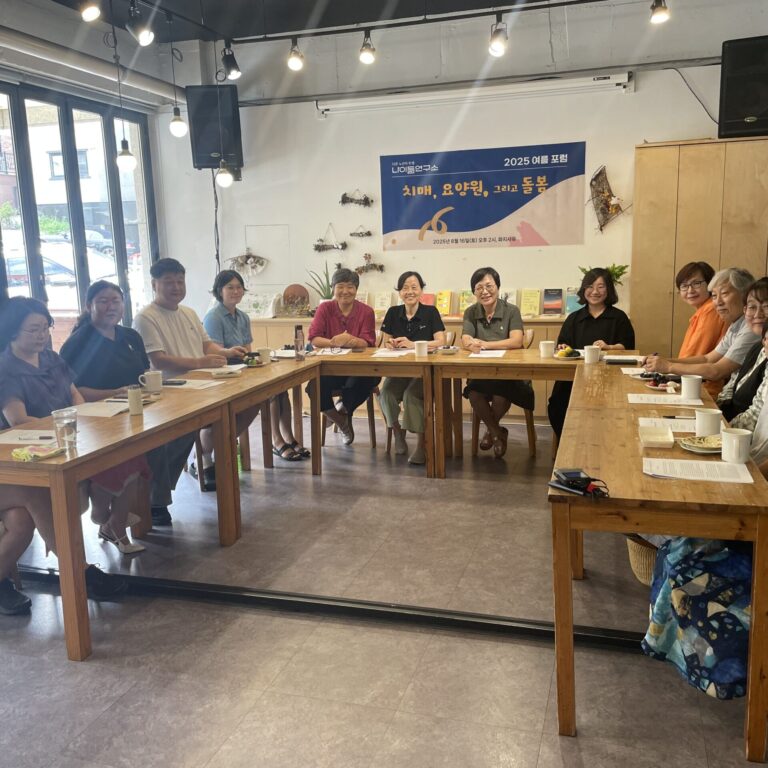 나이듦연구소가 2025 체인지메이커컨퍼런스의 토킹&네트워킹 프로그램에 참여합니다. 가족 돌봄을 떠맡고 있는 비혼, K장녀를 포함, 많은 돌봄 관계자들이 원탁에 둘러앉아, 돌봄과 관련된 사적인 경험을 공공연하게 말하면서 서로를 치유하고, 나아가 사회적 돌봄이 이루어지는…