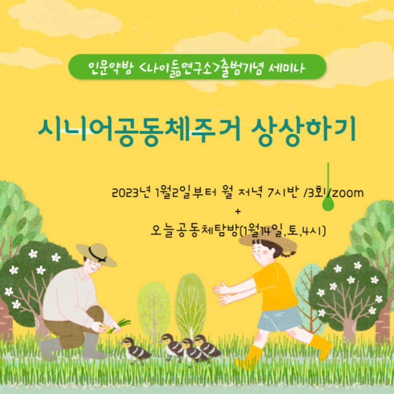 나이듦연구소 출범 기념 세미나 2023년 1월 2일부터 월요일 저녁 7시 30분 / 3회 오늘공동체 탐방(1월14일, 토 4시)